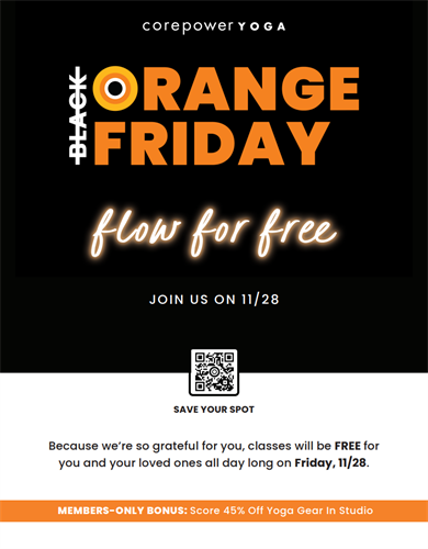 Name: FREE classes all day at Corepower Yoga for Orange FridayDate: November 28, 2025